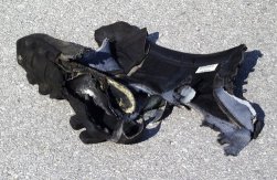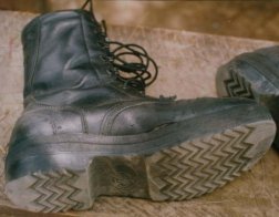 A WELCO blast boot after the wearer stepped on a PMA-3 (35g Tetryl) in Bosnia. The wearer lost his foot. DDASaccident